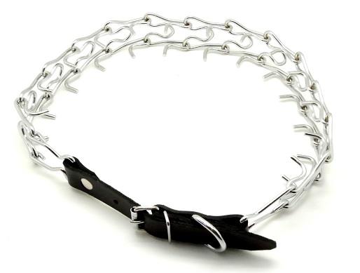 Kolczatka wykonana z drutu stalowego oraz naturalnej skóry.