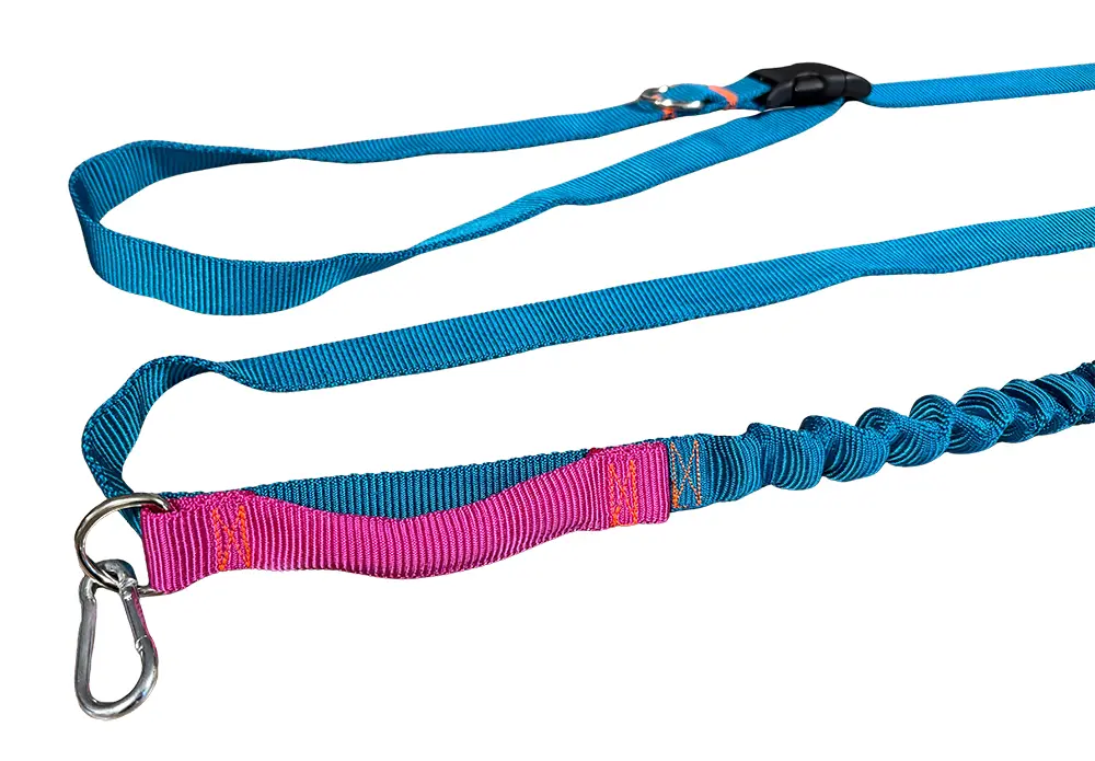 Smycz dla Psa Amortyzator Regulacja Skracana z dodatkową Rączką 280cm TURKUS do Pasa Biodrowa