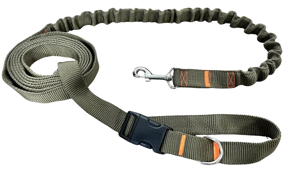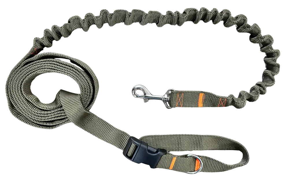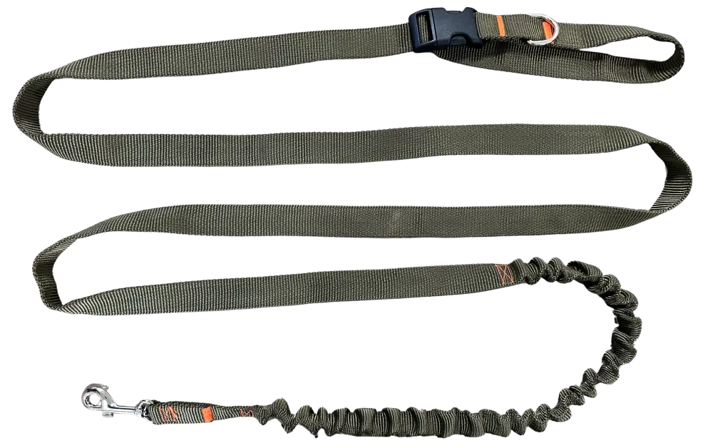 Smycz dla Psa z Amortyzatorem 280cm KHAKI Regulowana Sportowa