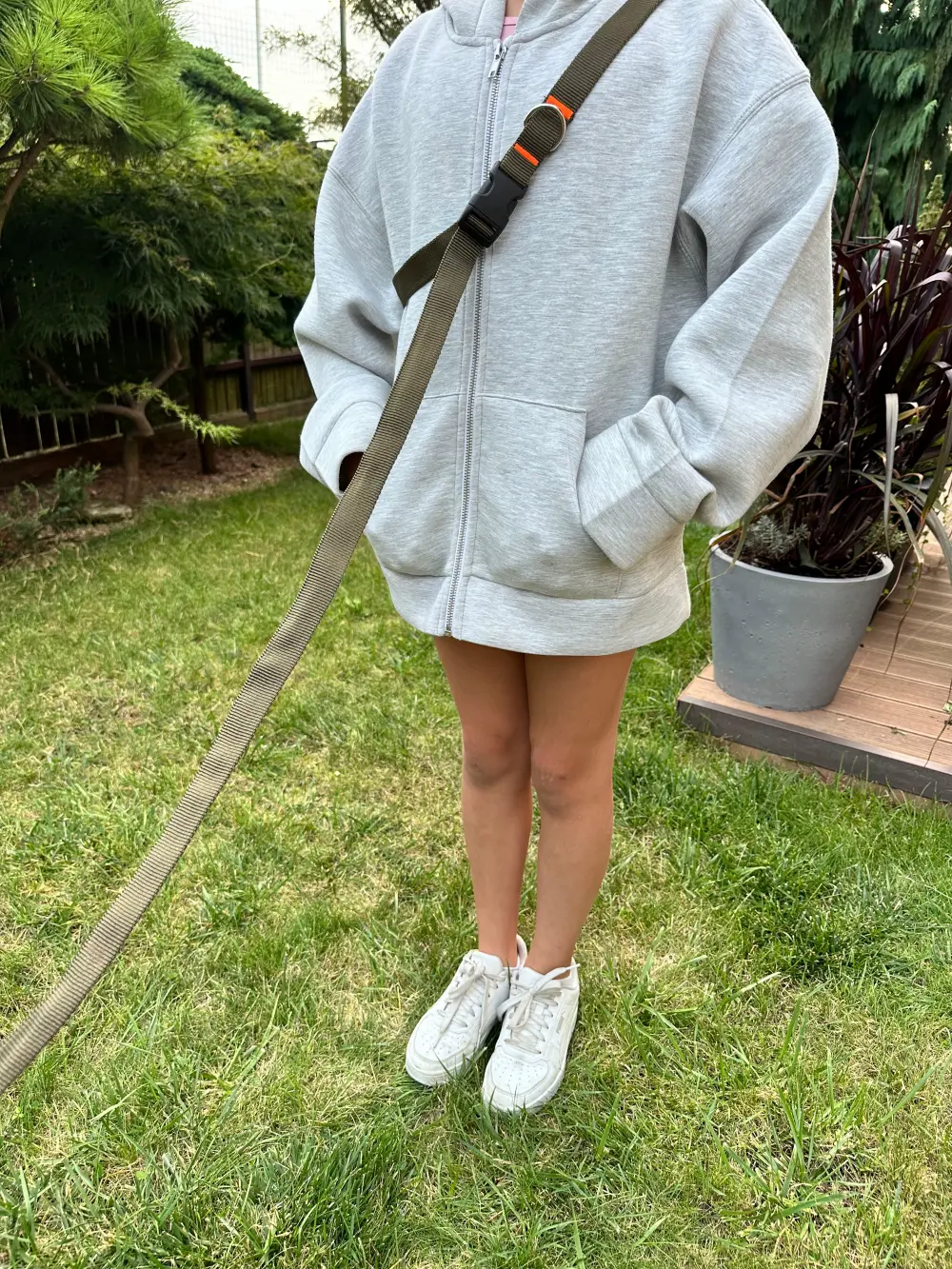 - Przewieszenie przez ramię – dla osób, które cenią sobie większą swobodę ruchu. Smycz można łatwo przewiesić przez ramię, co sprawia, że ręce są wolne, a pies wciąż jest bezpiecznie przypięty.
