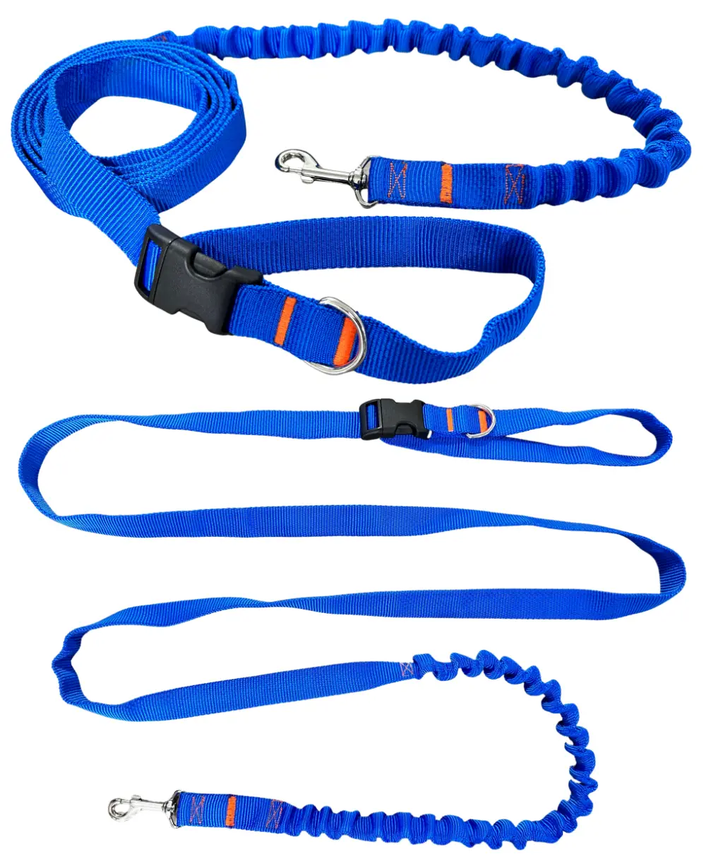 Smycz dla Psa z Amortyzatorem 280cm NIEBIESKA Regulowana Sportowa