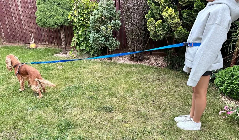 Smycz dla Psa z Amortyzatorem 280cm NIEBIESKA Regulowana do Pasa Biodrowa
