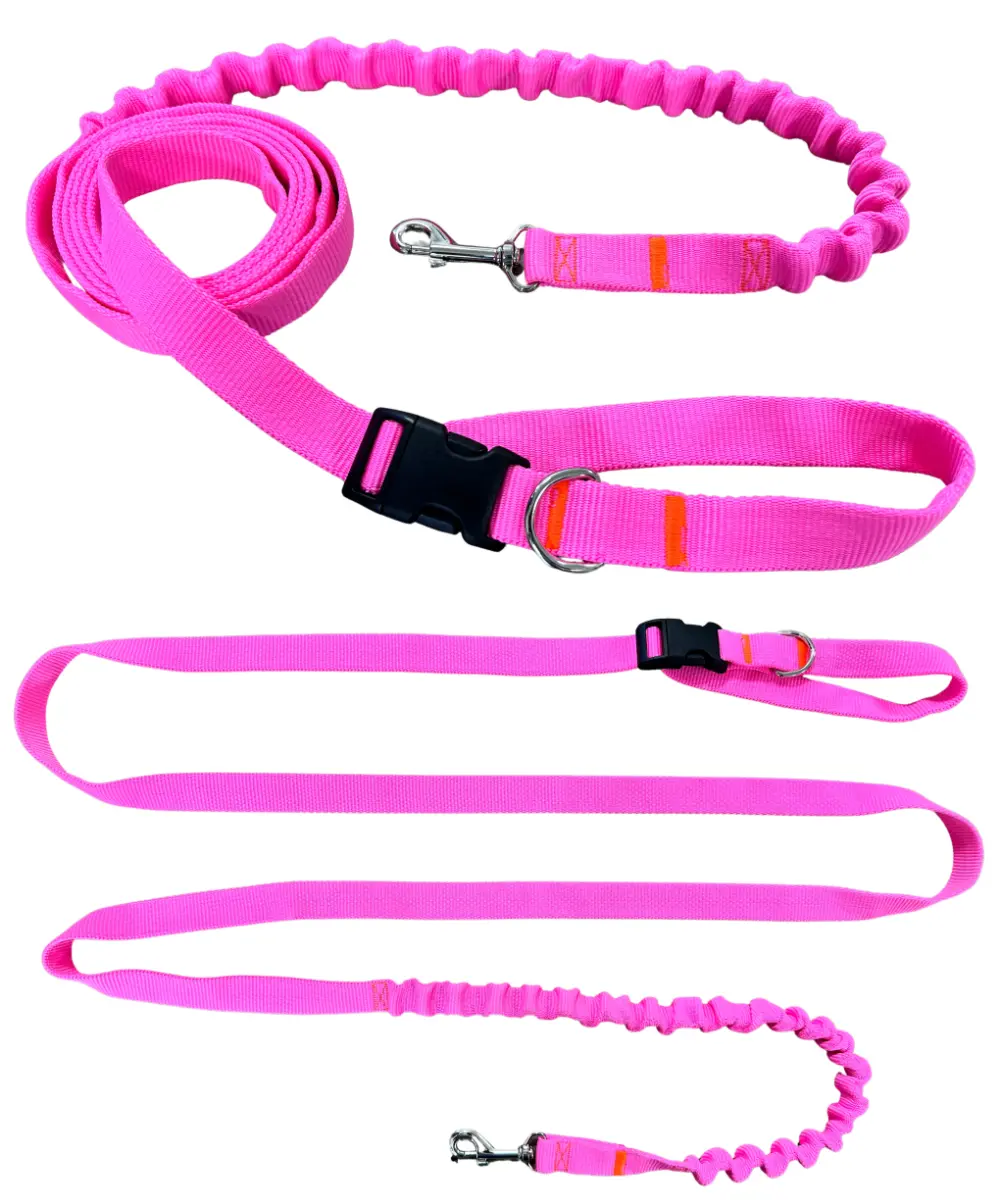 Smycz dla Psa z Amortyzatorem 280cm RÓŻ NEON Regulowana Sportowa
