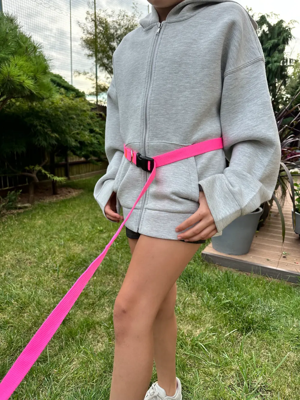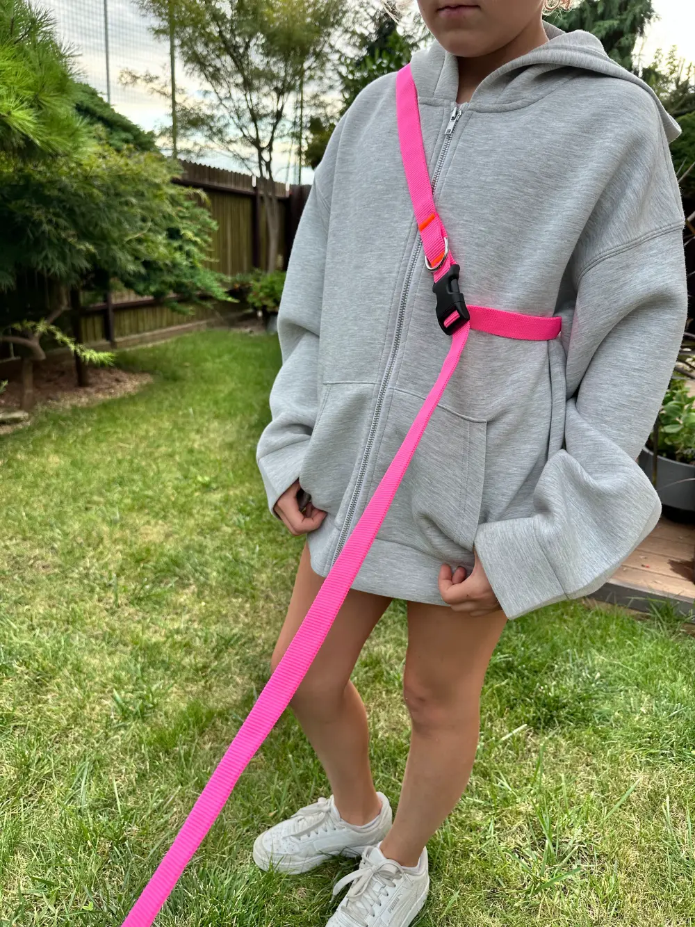 - Zapięcie wokół pasa – prawdziwa rewolucja dla aktywnych właścicieli psów. Zapięcie smyczy wokół pasa to rozwiązanie idealne dla biegaczy, rowerzystów lub osób, które chcą cieszyć się swobodą ruchu podczas spacerów. Posiadanie wolnych rąk to ogromna zaleta, zwłaszcza podczas długich wycieczek, kiedy potrzebujesz pełnej mobilności.