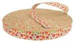Wzór taśmy z czarującym motywem psich łapek. Łapki są rozmieszczone w regularnych odstępach na jasnym tle, tworząc symetryczny i harmonijny wzór. Kolory łapek oscylują między odcieniami czerwieni i pomarańczy, co na tle subtelnego, zielono-pomarańczowego melanżu tworzy efekt ciepła i radości. Wzór ten emanuje przytulnością i przywodzi na myśl bezproblemowe spacery z czworonożnym przyjacielem. "PawPrint Harmony" jest wzorem, który z pewnością przyciągnie uwagę miłośników zwierząt i nada indywidualny charakter każdemu akcesorium czy projektowi rękodzielniczemu.